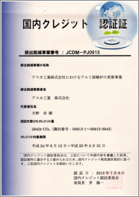 その結果、このたび、一般社団法人低炭素投資促進機構のご協力の元、国内クレジット認証委員会(委員長 茅陽一氏)より平成24年6月〜25年3月の期間で3943t-CO