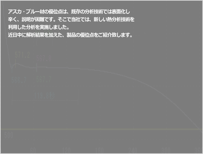 更に、アスカ工業の他の合金地金と同様に、アスカ・ブルー材も熱分析技術による清浄度分析を全ての溶湯に対して実施。 ダイカスト向けの厳しい清浄度基準を満たした製品のみ出湯、製品化しています。